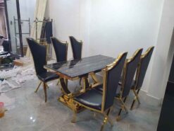 - Chất liệu: khung inox mạ vàng, da PU cao cấp